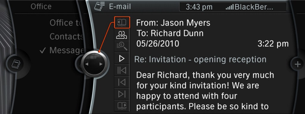 Thanks to the intelligent linking of the driver and his vehicle with the wider world, BMW ConnectedDrive is able to create fascinating possibilities for boosting comfort and safety as well as optimising the use of infotainment functions. BMW ConnectedDrive also takes the global lead when it comes to connecting smartphones and music players in the car. At the 2010 Paris Motor Show, BMW showcases a globally unique technology for integrating BlackBerry smartphones in the car, which among other things permits the display of emails including the text-to-speech function. BMW also presents the new Bluetooth interface technology that was created for the Apple iOS 4 operating system and allows the new Apple iPhone 4 to be integrated, among other devices. Also on show is the iPod Out function, which optimises the operation of various Apple music players in the vehicle. New possibilities for online use are opened up by the WiFi hotspot function that provides rear-seat passengers using a notebook or iPad with wireless internet access while on the move.-bmwblog.